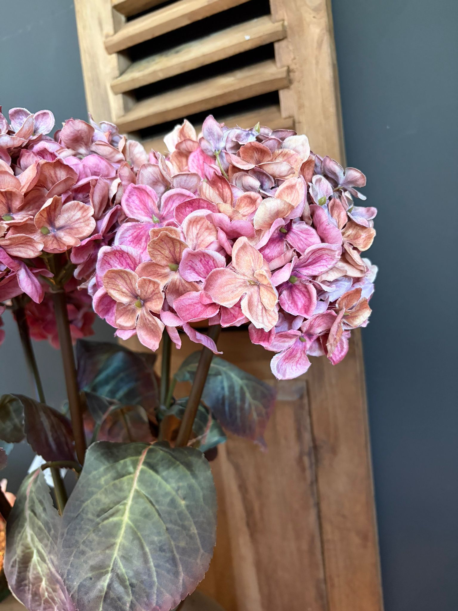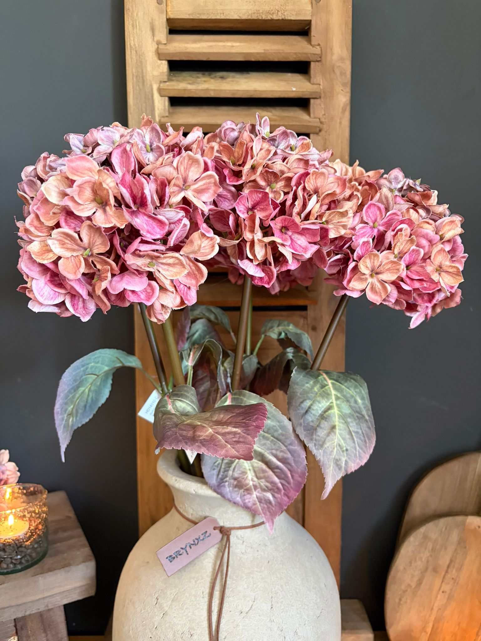 Breng sfeer en zachtheid in huis met deze prachtige Hydrangea Pink van 70 cm. De volle, rijk gevulde bloemen in warme roze tinten geven direct een luxe en romantische uitstraling aan elk interieur. Deze kunstbloem is nauwelijks van echt te onderscheiden en blijft het hele jaar door mooi – zonder onderhoud. Perfect voor in een robuuste kruik, een landelijke setting of als subtiele eyecatcher op tafel of dressoir.