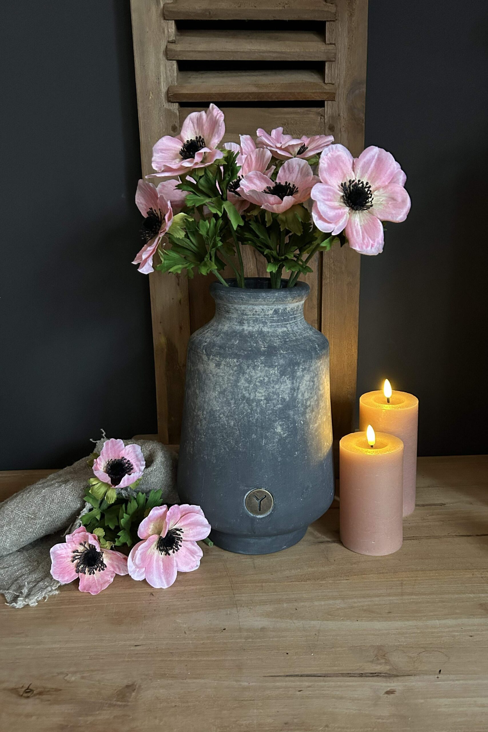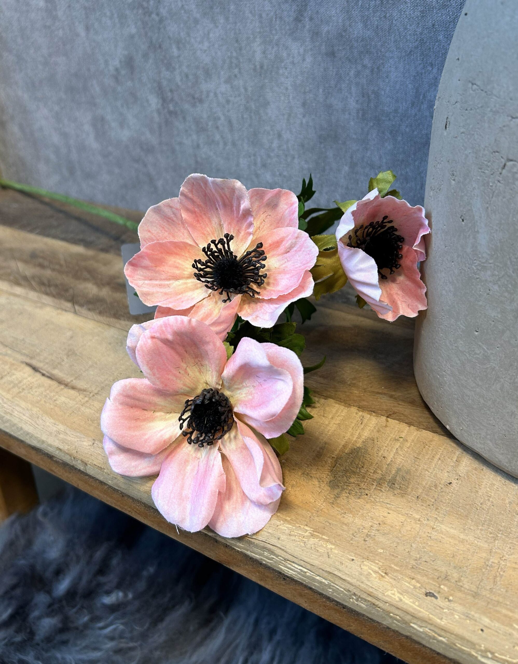 Breng een zachte, elegante touch in je interieur met deze prachtige roze anemoon van Brynxz. De bloem heeft een natuurlijke uitstraling met subtiele kleurnuances en een donker hart, waardoor hij bijna niet van echt te onderscheiden is. De lengte van 56 cm maakt deze anemoon perfect voor een vaas, kruik of als onderdeel van een stijlvol bloemstuk.