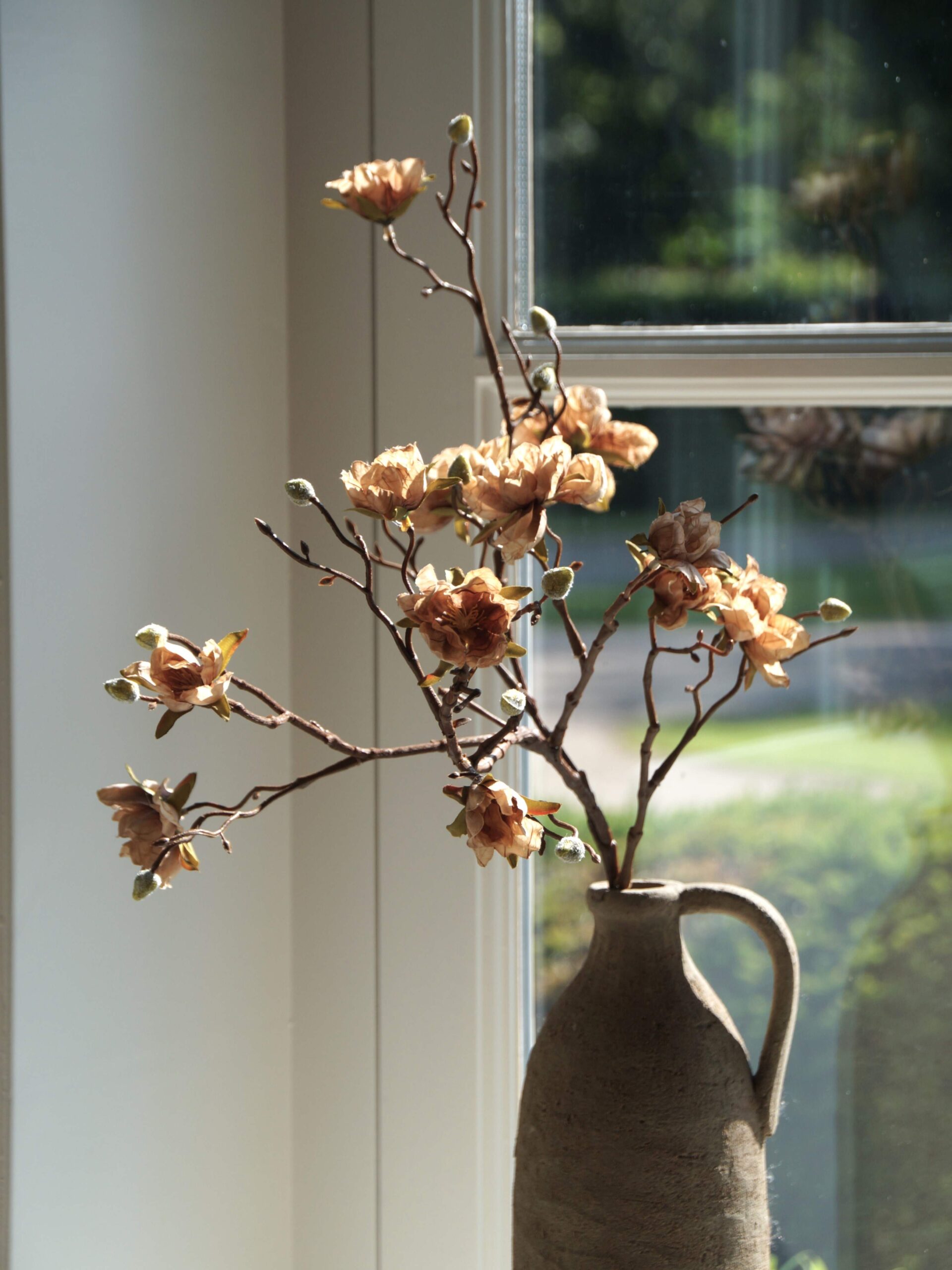 Het voordeel van deze bloem is dat het onderhoudsvrij is. Ze hebben geen water of verzorging nodig en blijven in topconditie. De zijden bloem is gemaakt van hoogwaardig materialen en zal niet vervagen. Het is veelzijdig in gebruik en kan eindeloos gestyled worden. De kunstbloem is voorzien van een lange steel, (ongeveer 83 cm) dus ook goed te gebruiken in een hoge fles, vaas of kruik. Wil je ze in lagere fles, vaas of kruik plaatsen dan kan je de steel eenvoudig met een knijptang op de juiste lengte afknippen.