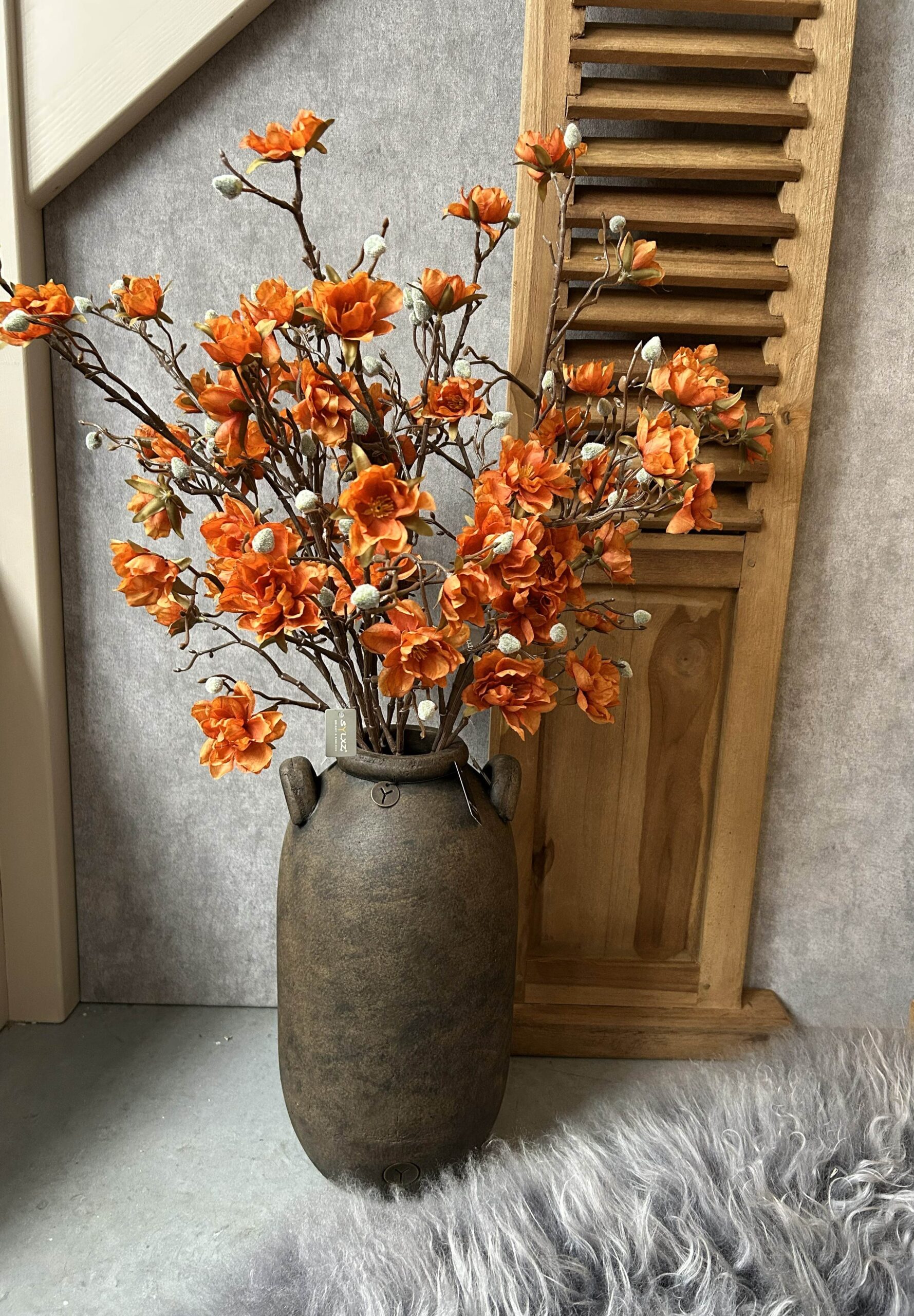 Deze verfijnde Azalea tak in een oranje kleur is 83 cm lang en een echte eyecatcher. Met maar liefst twaalf bloemen per tak haal je een stukje natuur in huis. Plaats hem in een mooie grote pot of vaas of als onderdeel van een groot boeket.