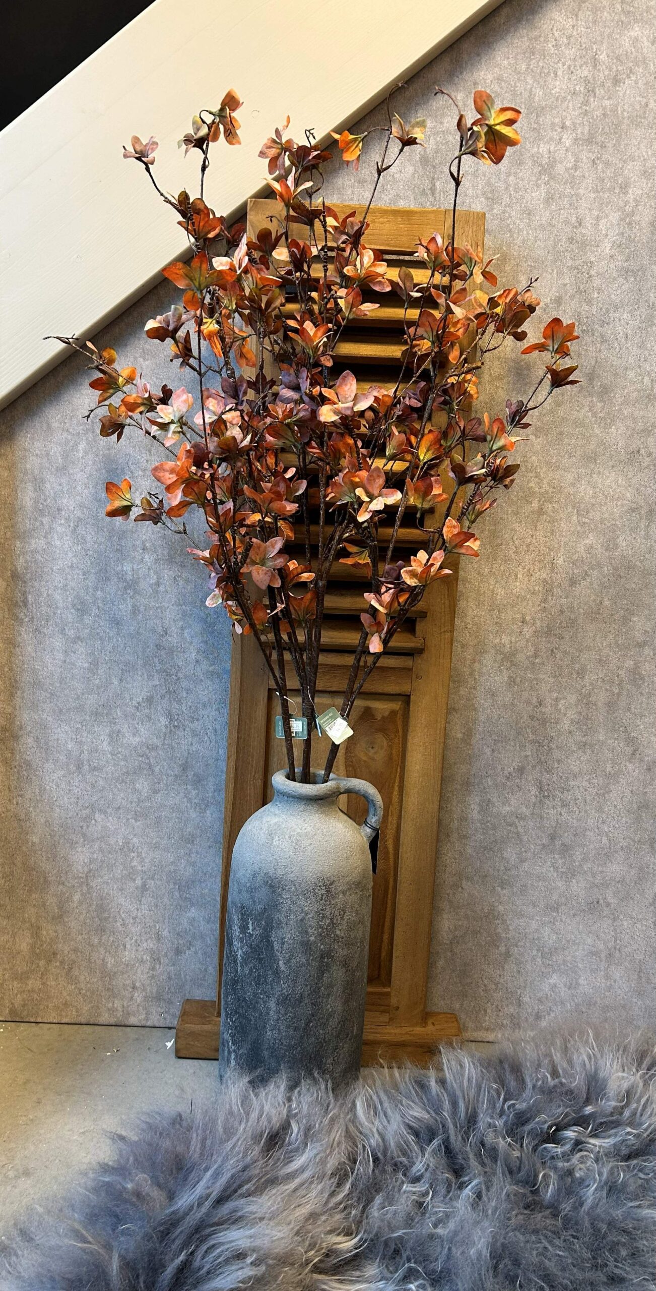 Deze verfijnde Azaleal Leaf tak in een warme koper kleur is maar liefst 120 cm lang en een echte eyecatcher. Plaats hem in een mooie hoge vaas of kruik. Of als onderdeel van een groot boeket.