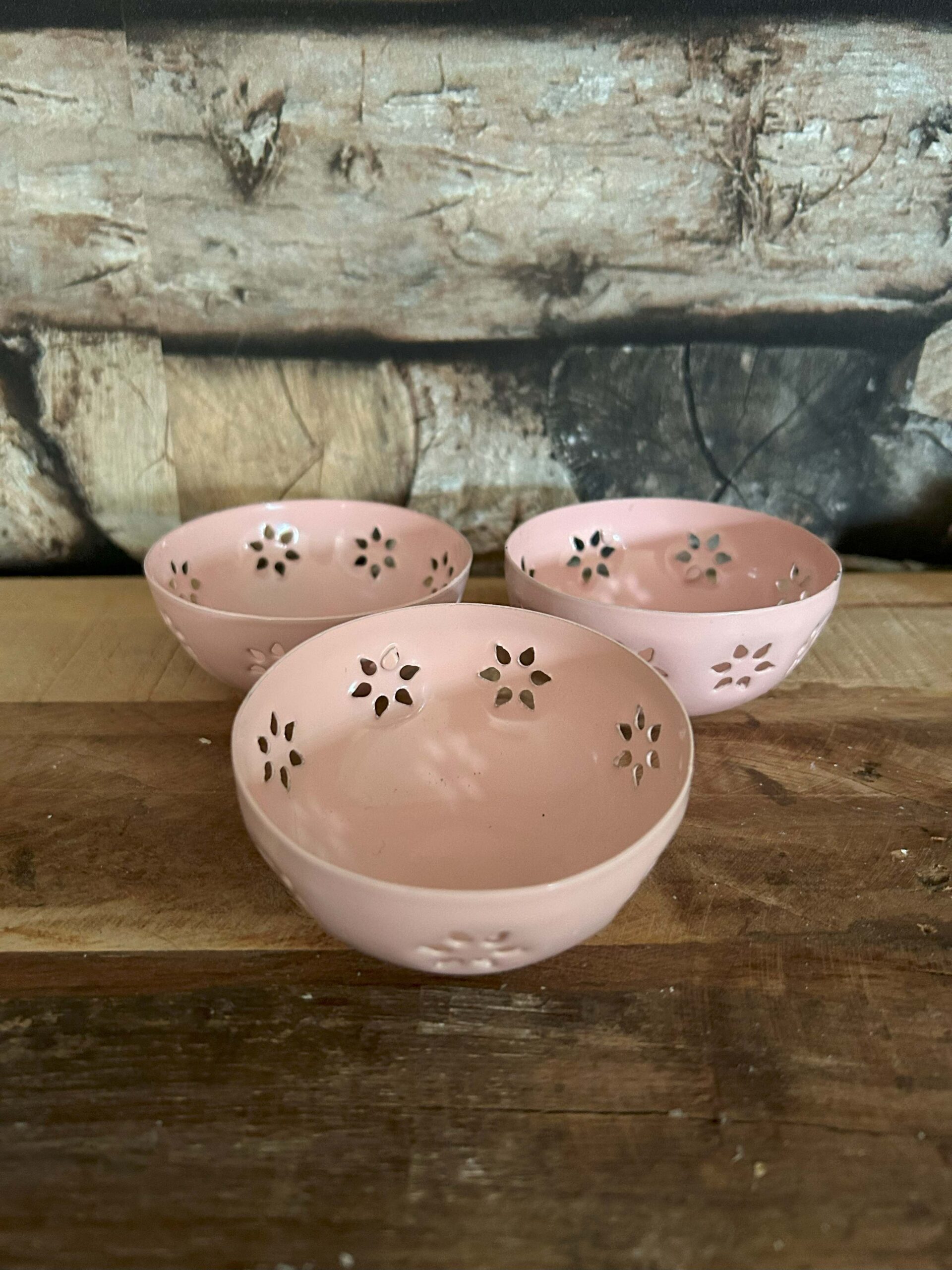 Ontdek dit schattige metalen bloemenschaaltje in de kleur roze. Perfect om je favoriete amberblokjes in te presenteren of om een (led) waxinelichtje in te doen.