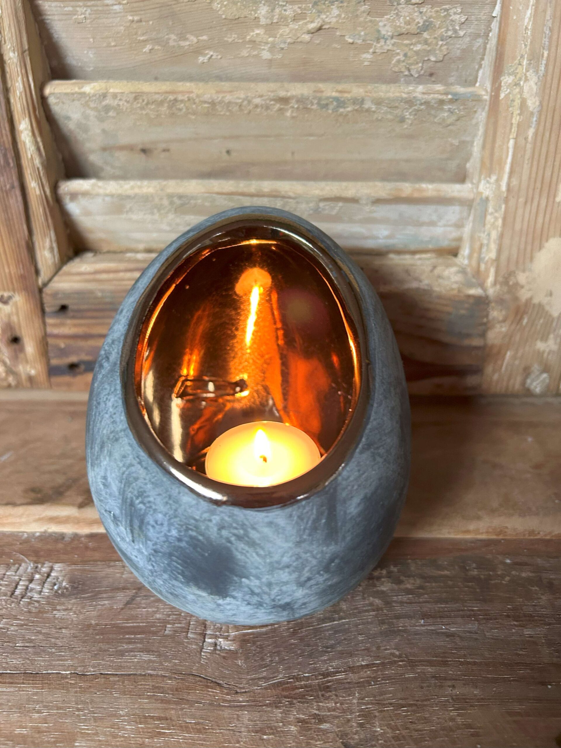 De waxinelichthouder is van keramiek.