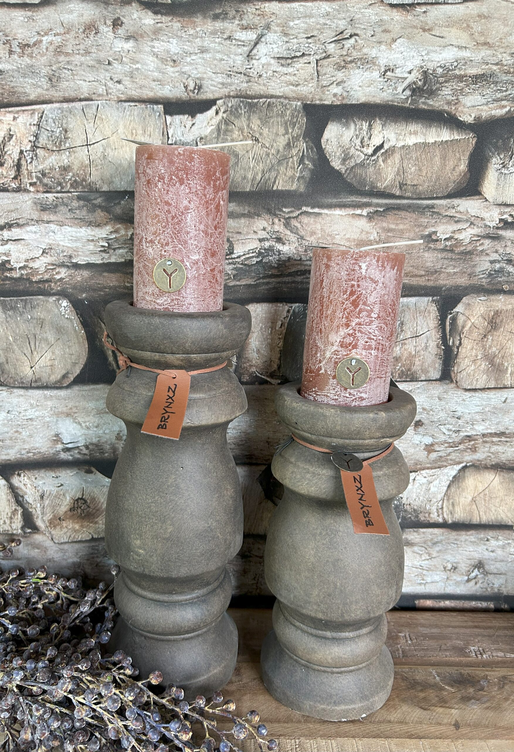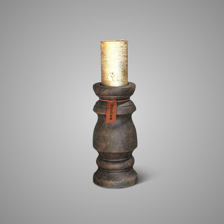 Breng sfeer en warmte met deze prachtig kaarsenhouder uit de Majestic Brown collectie van Brynxz. Met de warme bruin gemeleerde kleur straalt het luxe en elegantie uit wat perfect past in een landelijke en sobere stijl. De kaarsenhouder heeft ook een grotere variant, wat samen een mooi geheel vormt. De rustieke stompkaars van Brynxz maat 7×12 past er mooi in.