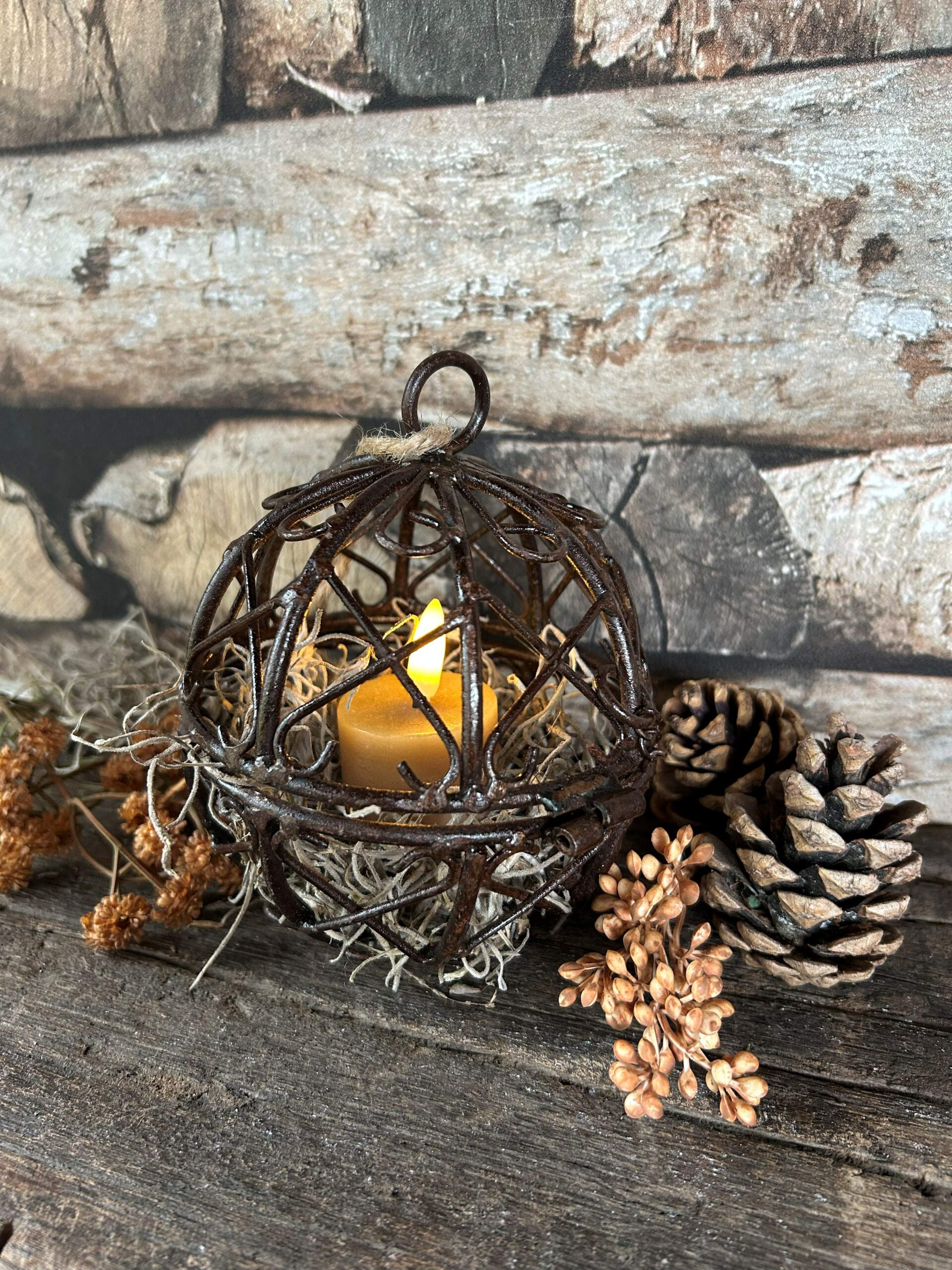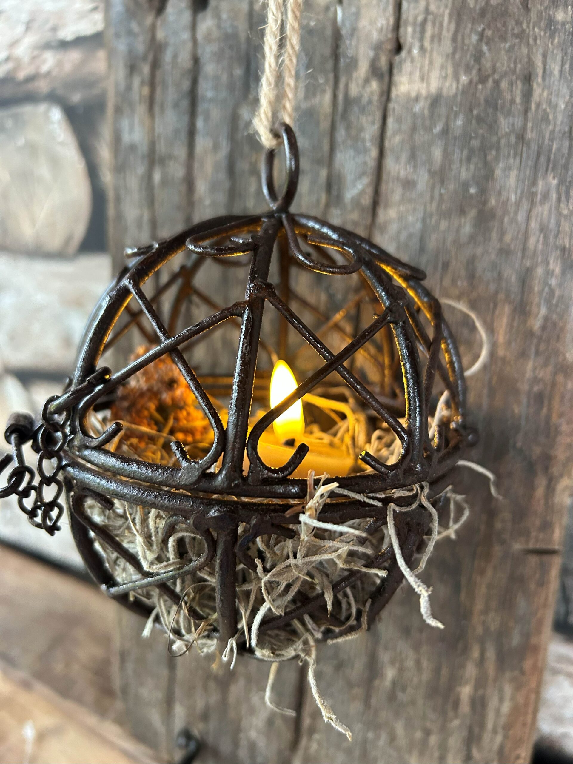Breng een stoer en sfeervolle touch aan je interieur met deze prachtige gevlochten ijzeren bal. De bruine bal is eenvoudig te openen met een handig schuifje. Leuk om op te hangen met een Led waxinelichtje er in en wat tillandsia of mos. Of decoreer ze bijvoorbeeld op een mooie (houten) schaal.