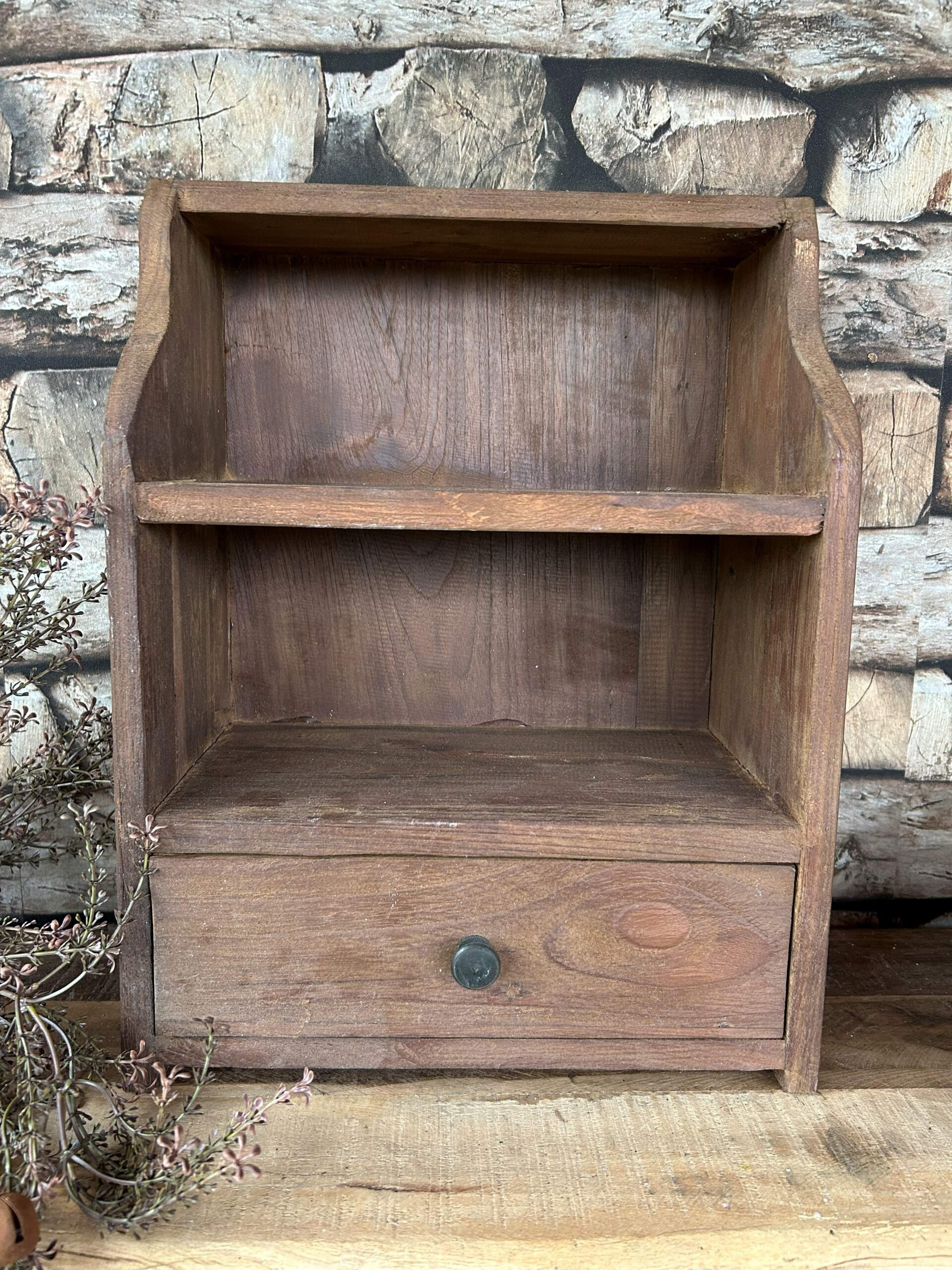 Prachtig handgemaakte houten gruttersbak met plankje en een opberglade. Zowel een praktische als sfeervolle toevoeging aan je keuken, woonkamer of kantoor. Het robuuste verweerde hout geeft het een warme en sfeer en past perfect in een landelijk en sober interieur.