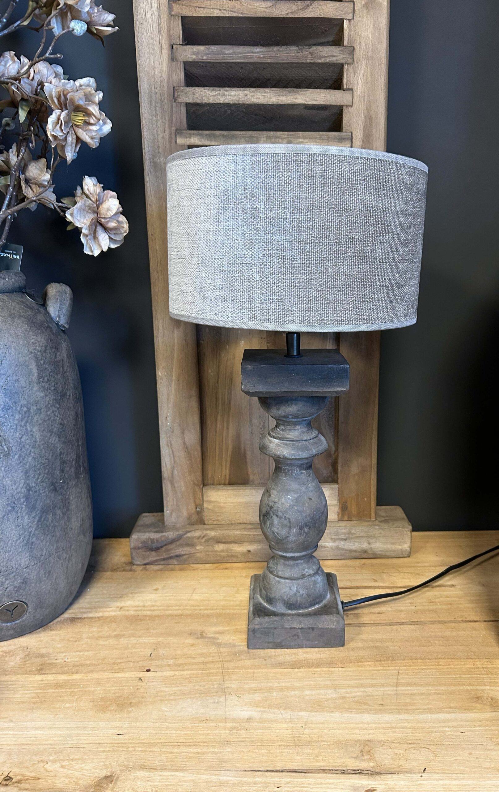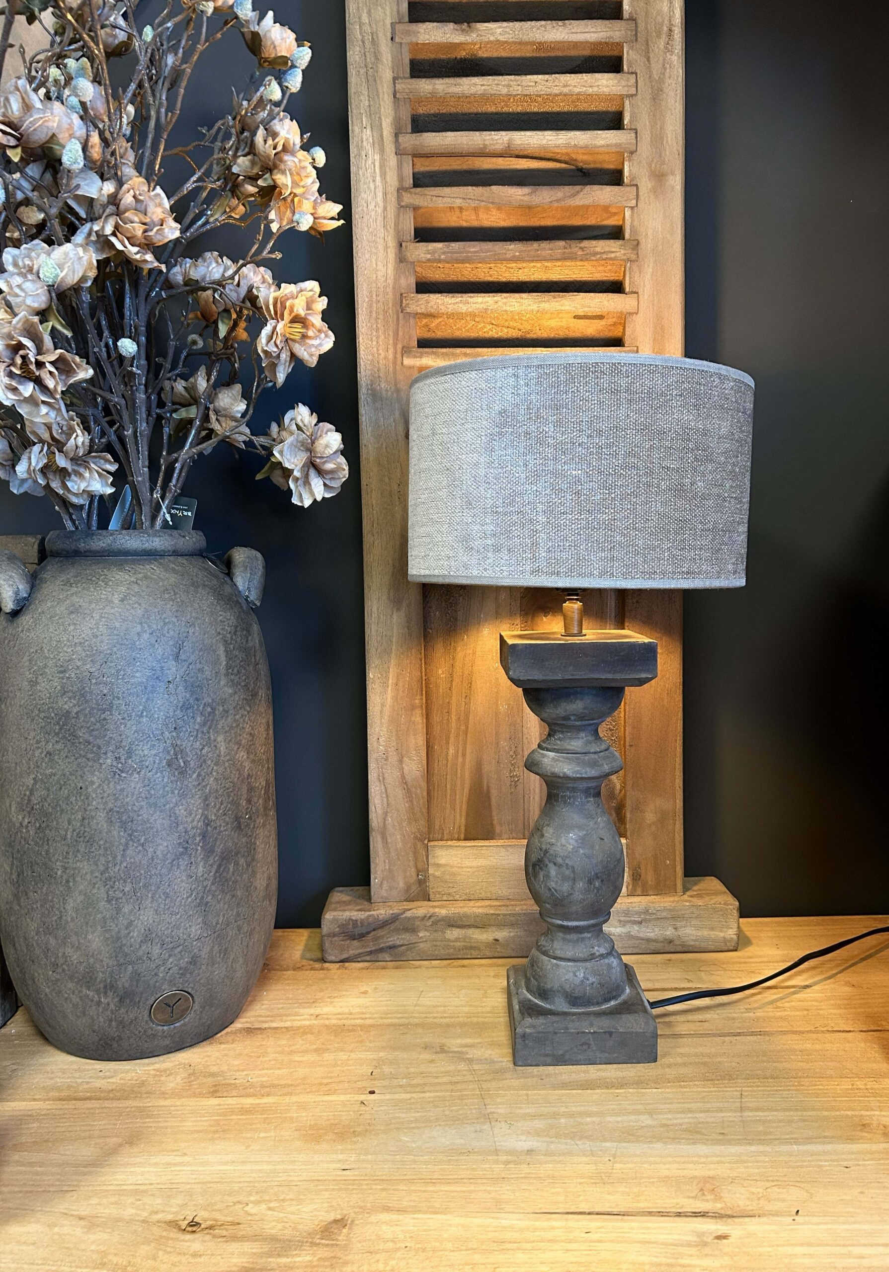 Sfeervolle houten schemerlamp met taupekleurige lampenkap. Breng warmte en karakter in je interieur met deze prachtige houten schemerlamp. De robuuste, houten voet heeft een doorleefde, natuurlijke uitstraling en vormt een mooi contrast met de stijlvolle taupekleurige lampenkap. Samen zorgen ze voor een tijdloos geheel dat moeiteloos past in zowel een landelijk, industrieel als modern interieur. Wanneer de lamp brandt, verspreidt hij een zacht en warm licht dat direct zorgt voor een gezellige sfeer in de woonkamer, slaapkamer of hal. Perfect als sfeerverlichting op een dressoir, bijzettafel of nachtkastje.