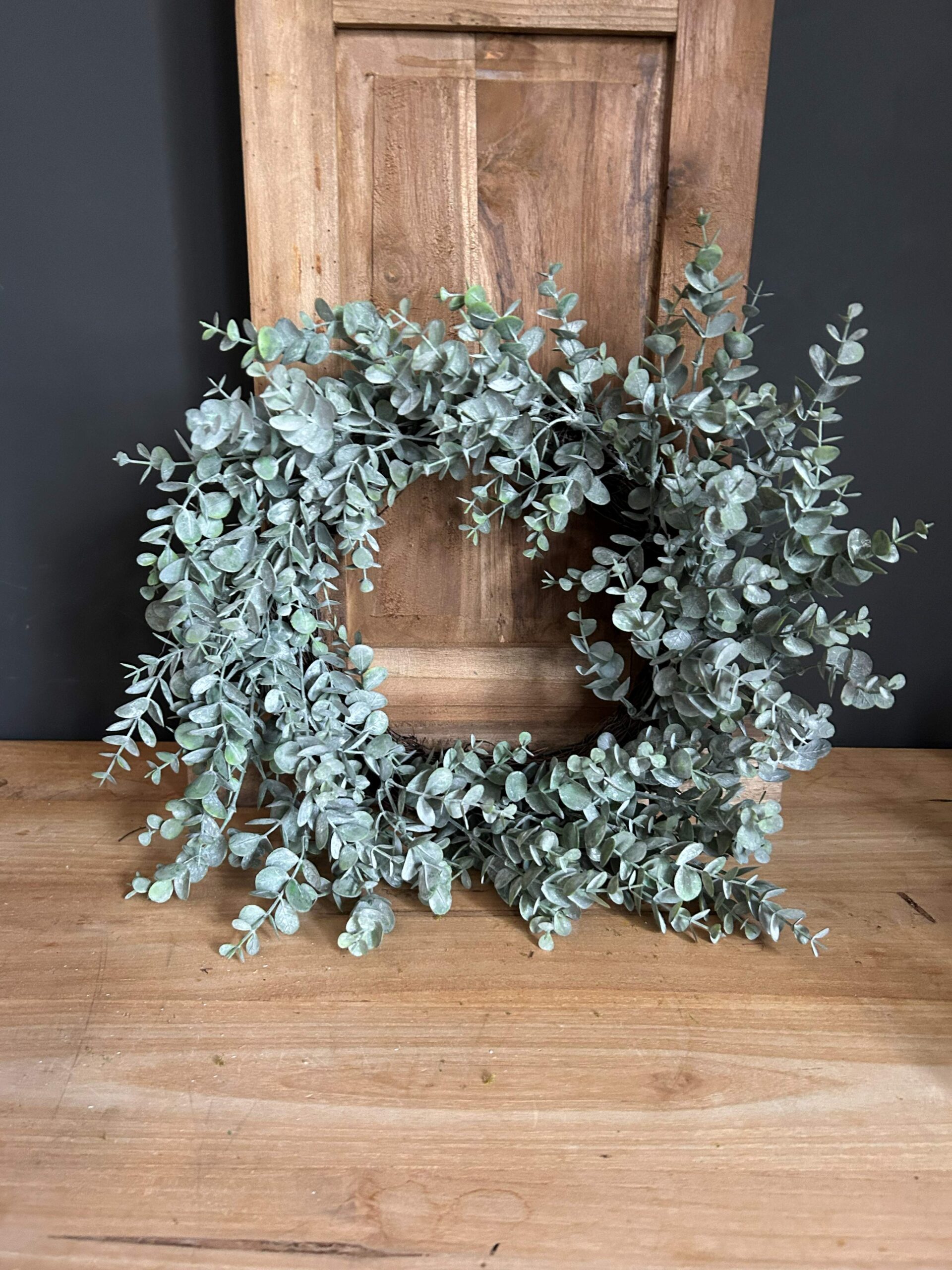 Breng de lente in huis met deze luxueuze kunst voorjaarskrans, rijk gevuld met levensechte eucalyptusbladeren. De subtiele grijsgroene tinten en volle opbouw geven de krans een stijlvolle, natuurlijke uitstraling die moeiteloos past bij elk interieur.