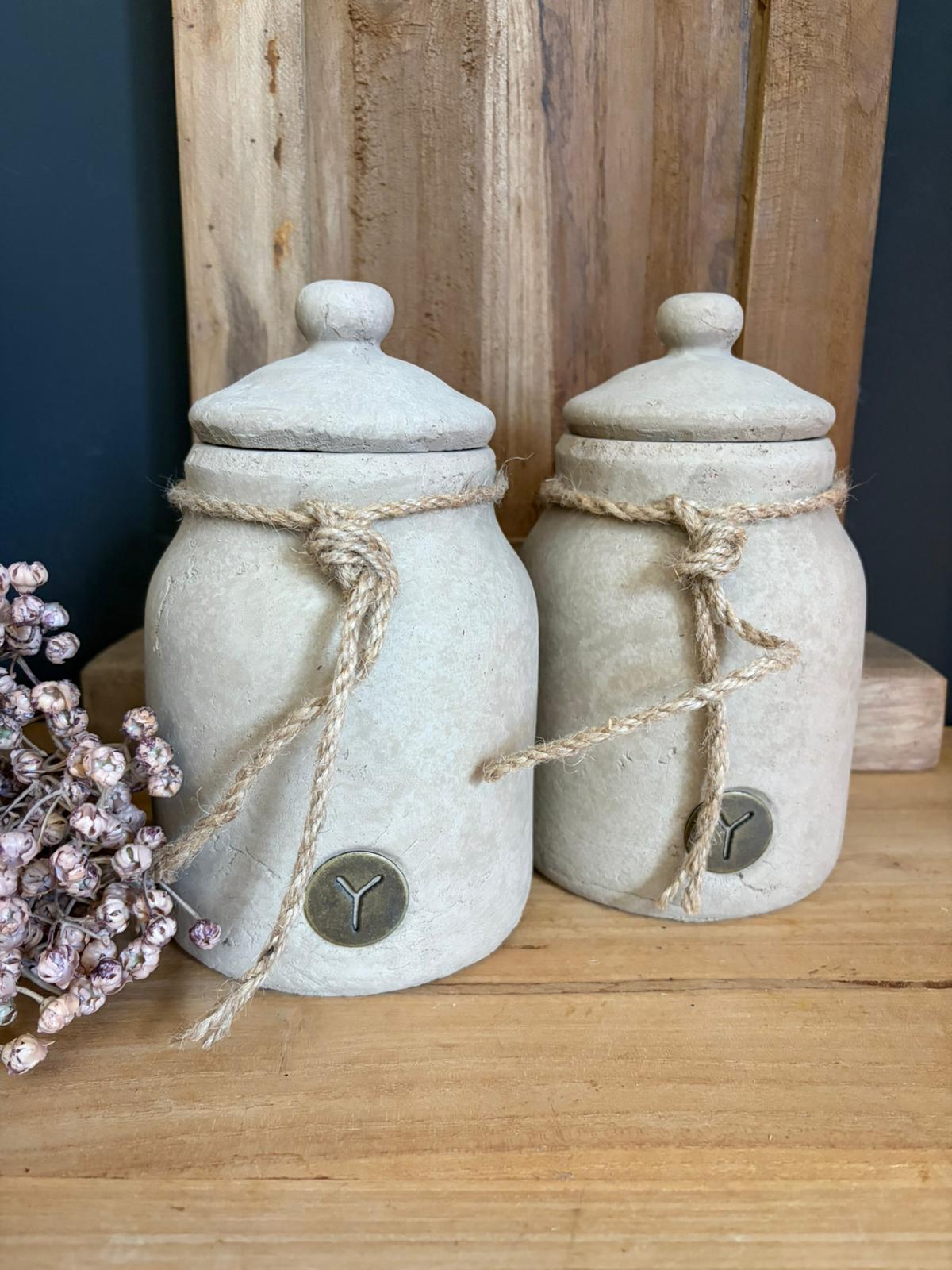 Afmetingen: Ø 13 x H 21 cm (De rechter pot op de foto).