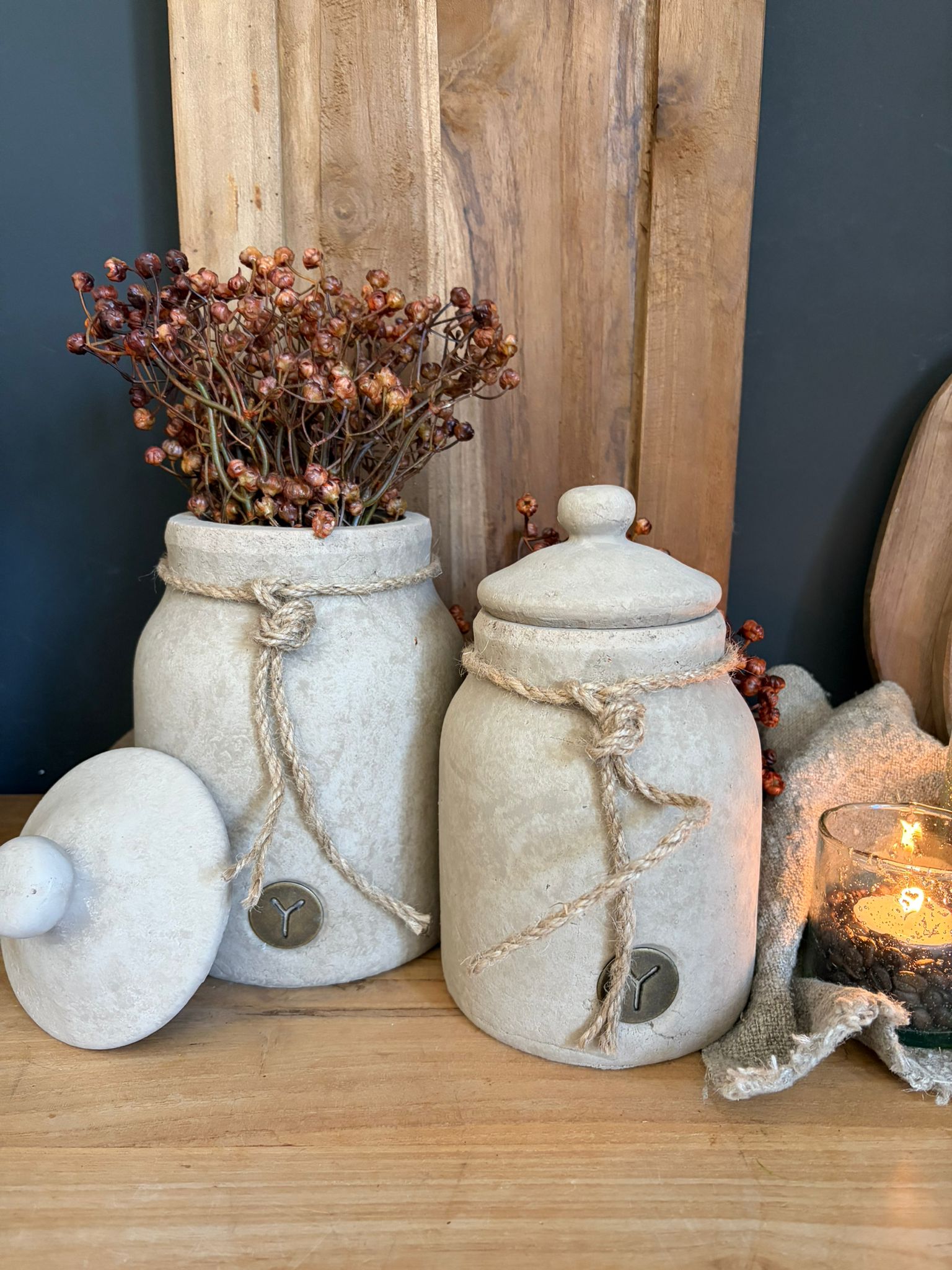 Deze stijlvolle pot met deksel uit de Majestic Taupe collectie van Brynxz straalt rust en eenvoud uit. De zachte taupe kleur, robuuste afwerking en het subtiele touwdetail geven de pot een warme, landelijke uitstraling. Perfect als decoratief item in keuken, woonkamer of hal, zowel solo als in combinatie met andere Brynxz items. Tijdloos, sober en vol karakter.