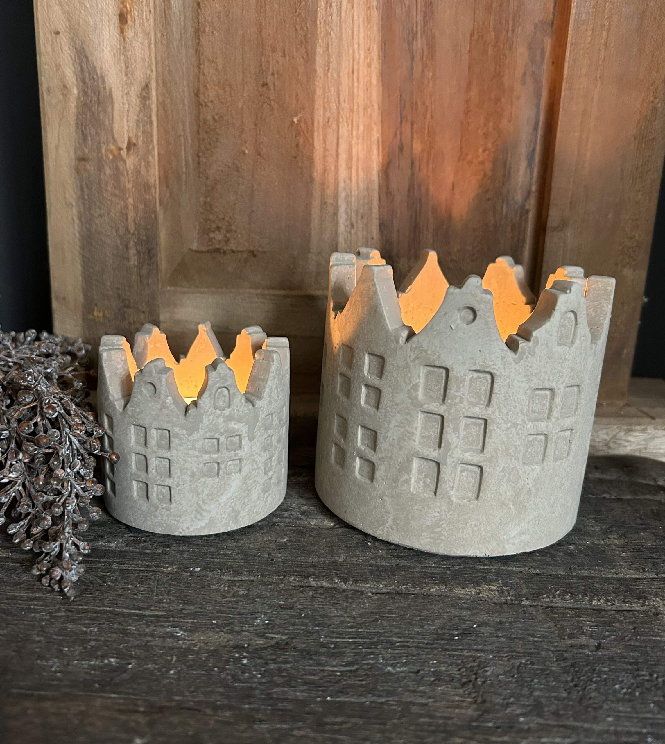 De verfijnde details van de gevels en ramen komen prachtig tot leven zodra je er een theelichtje in plaatst. Het zachte kaarslicht schijnt subtiel door de kleine vensters en zorgt voor een knusse, gezellige ambiance in elke ruimte. De kenmerkende taupe tint uit de Majestic Taupe collectie geeft de housjes een stoere, maar tegelijkertijd stijlvolle en tijdloze uitstraling.