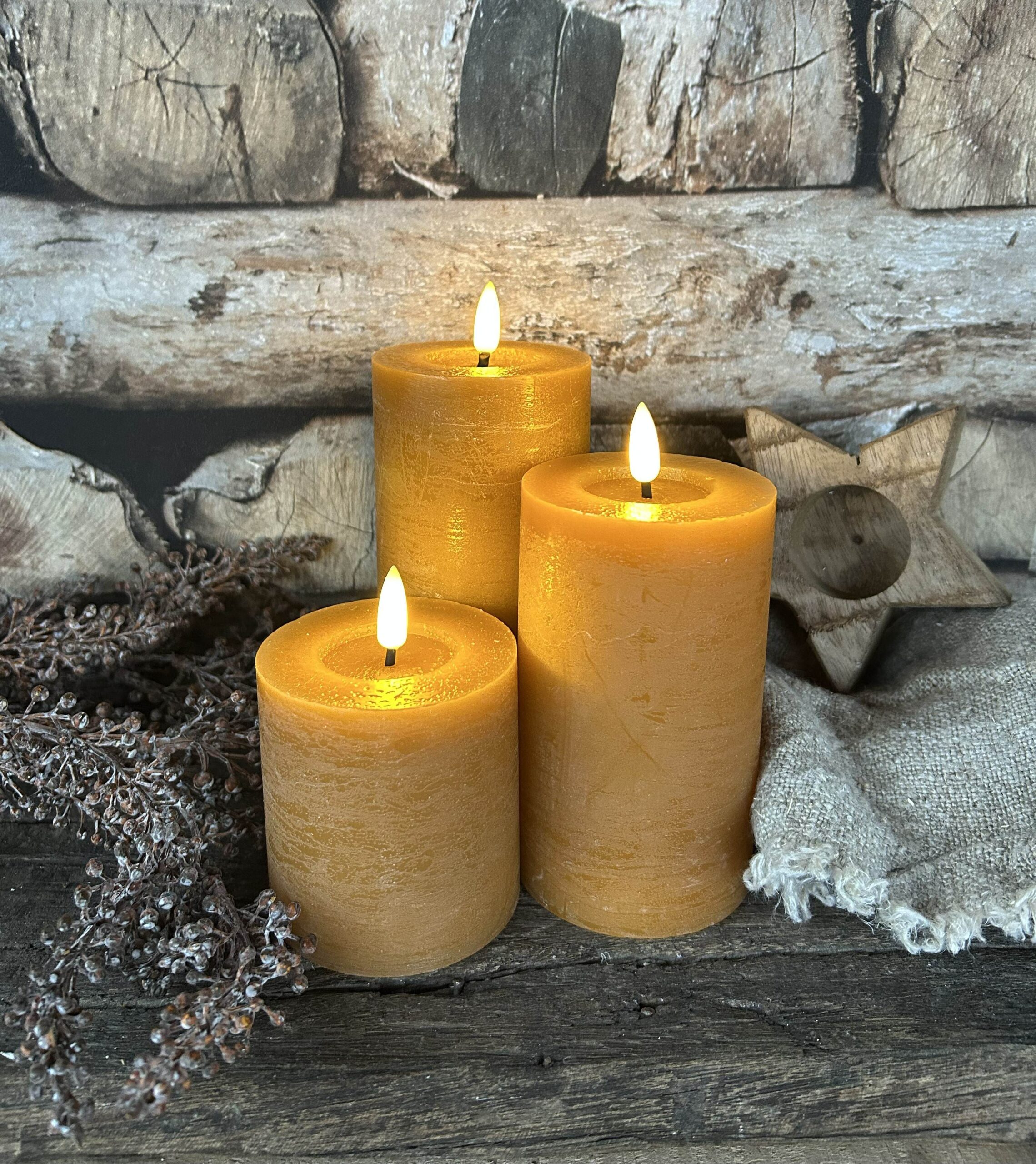 Prachtige Led rustieke stomp kaarsen uit de Countryfield collectie brengt sfeer voor elke gelegenheid. Deze moderne stopmpkaarsen met LED-verlichting is de perfecte aanvulling op je nieuwe interieurcollectie. De trendy Led kaarsen zijn met zorg gemaakt van hoogwaardig wax. Ervaar de warme gloed en uitnodigende sfeer die ze creëren, en breng een vleugje elegantie in jouw woondecoratie collectie. De kaarsen zijn gemakkelijk te bedienen met de Countryfield afstandsbediening.