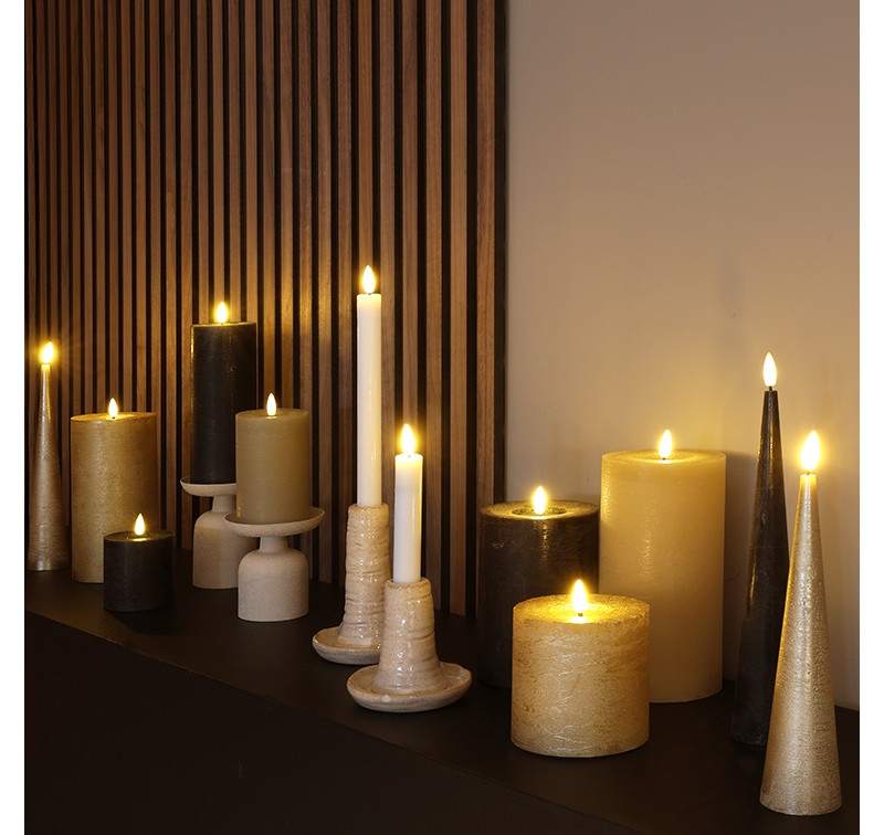 Prachtige Led rustieke stomp kaarsen uit de Countryfield collectie brengt sfeer voor elke gelegenheid. Deze moderne stopmpkaarsen met LED-verlichting is de perfecte aanvulling op je nieuwe interieurcollectie. De trendy Led kaarsen zijn met zorg gemaakt van hoogwaardig wax. Ervaar de warme gloed en uitnodigende sfeer die ze creëren, en breng een vleugje elegantie in jouw woondecoratie collectie. De kaarsen zijn gemakkelijk te bedienen met de Countryfield afstandsbediening.
