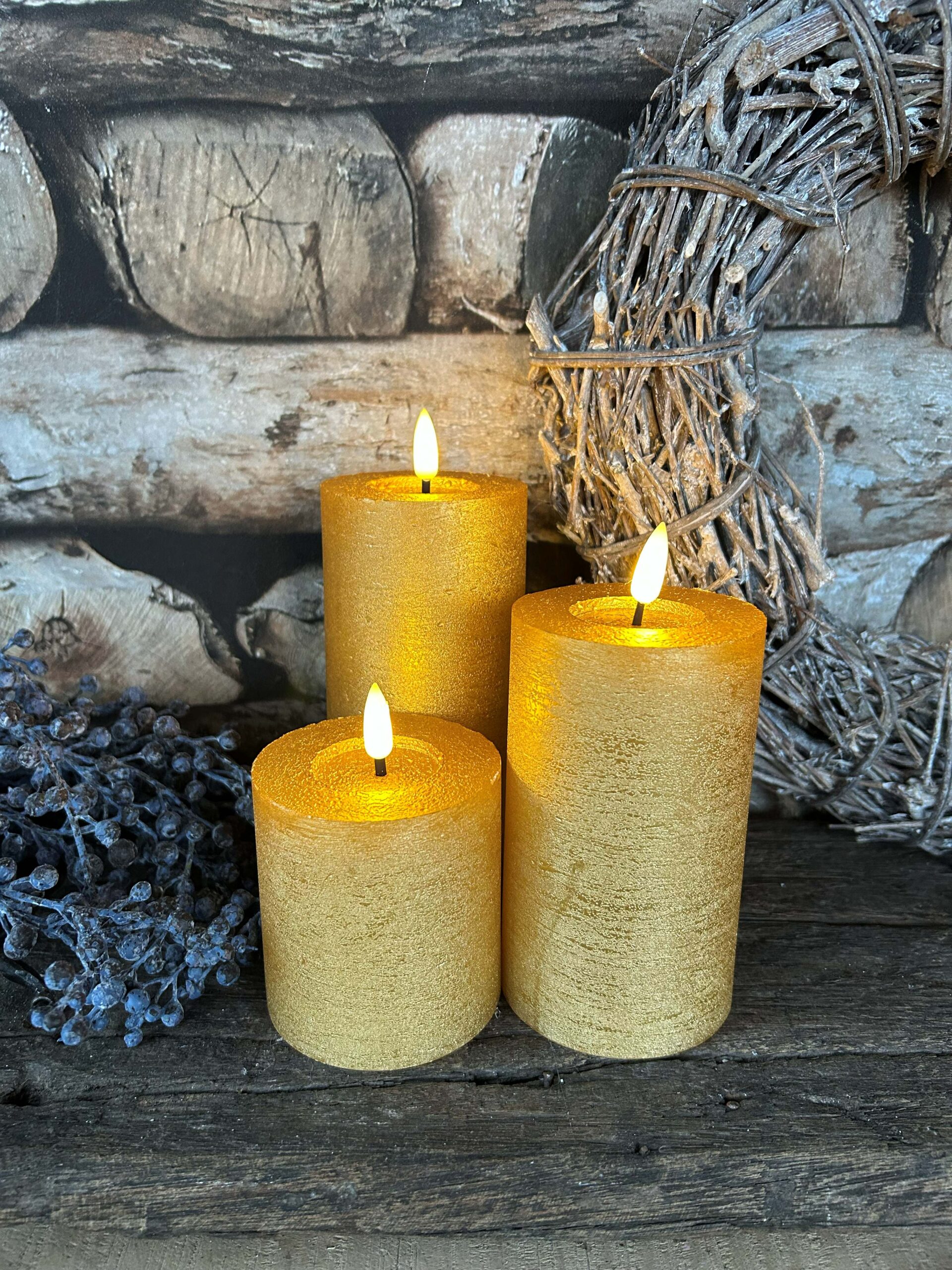 Stompkaars rustiek LED goud Ø7,5x15cm