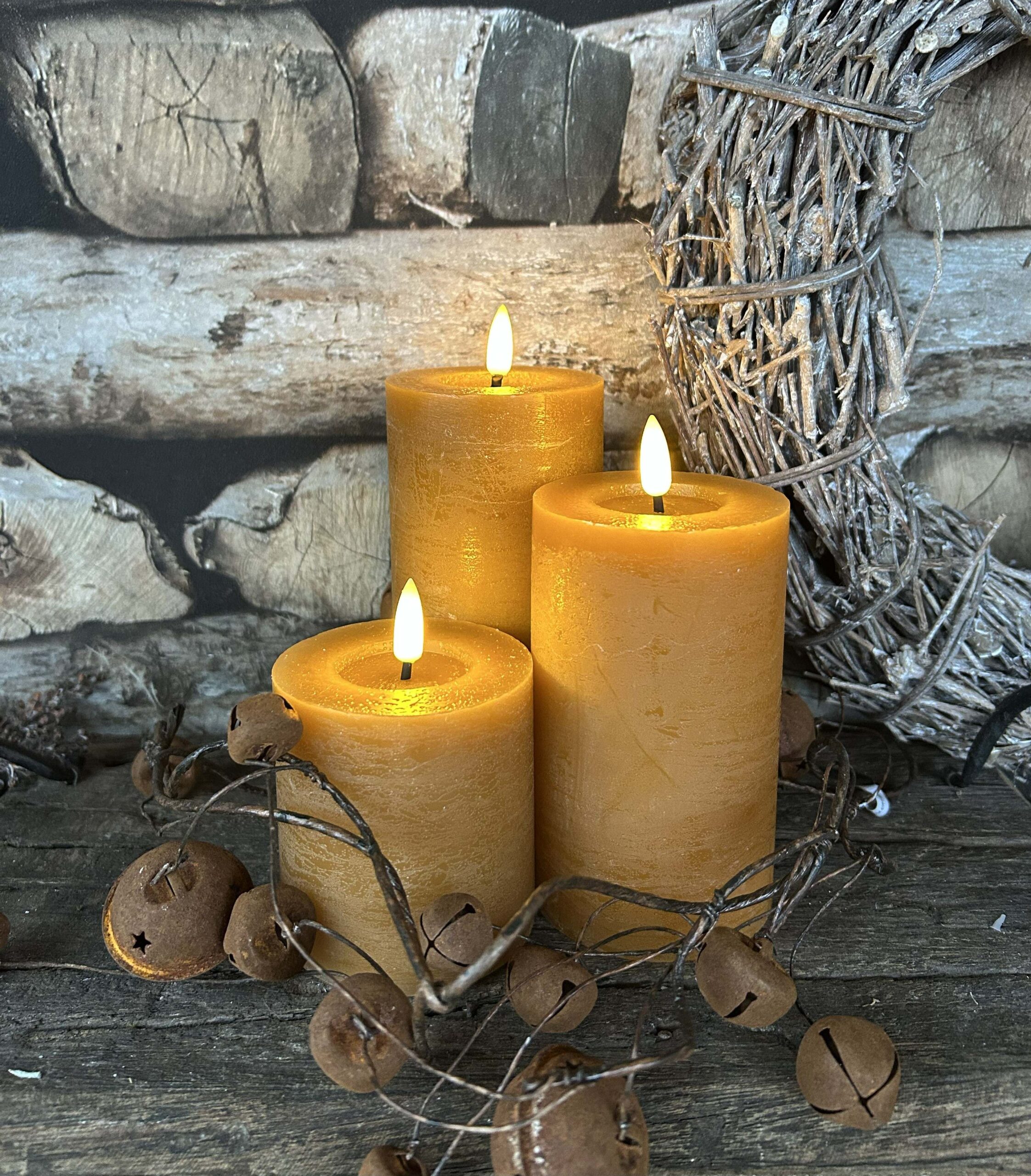 Prachtige Led rustieke stomp kaarsen uit de Countryfield collectie brengt sfeer voor elke gelegenheid. Deze moderne stopmpkaarsen met LED-verlichting is de perfecte aanvulling op je nieuwe interieurcollectie. De trendy Led kaarsen zijn met zorg gemaakt van hoogwaardig wax. Ervaar de warme gloed en uitnodigende sfeer die ze creëren, en breng een vleugje elegantie in jouw woondecoratie collectie. De kaarsen zijn gemakkelijk te bedienen met de Countryfield afstandsbediening.