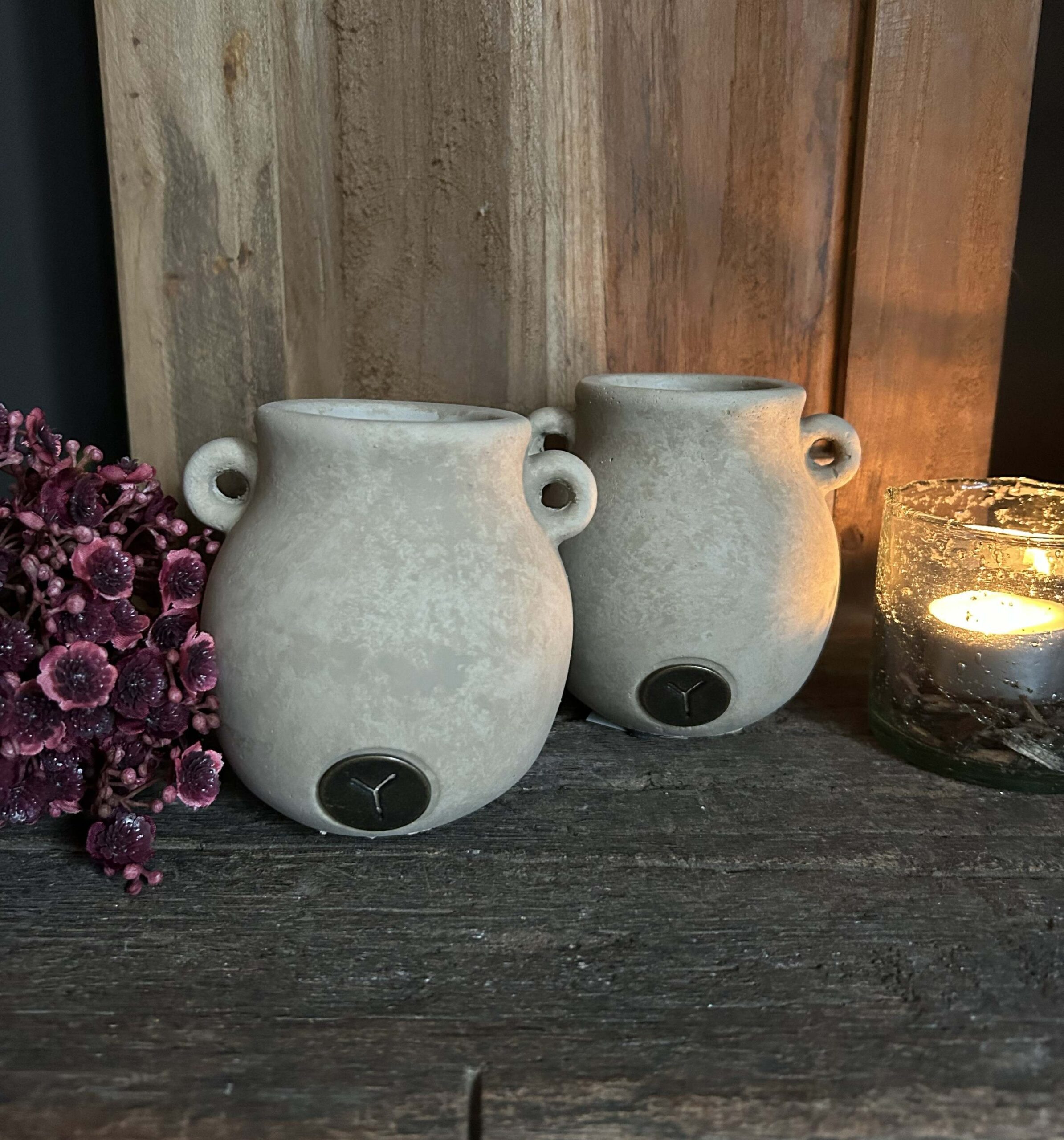 Breng warmte en karakter in je interieur met de Tealightcup Two Ears uit de Majestic Taupe collectie van Brynxz. De robuuste afwerking en stijlvolle taupekleur geven deze theelichthouder een stoere, landelijke uitstraling. Dankzij de oortjes aan de zijkant is het een echte blikvanger op tafel, kast of vensterbank. Perfect voor een sfeervol accent, het hele jaar door. ✨