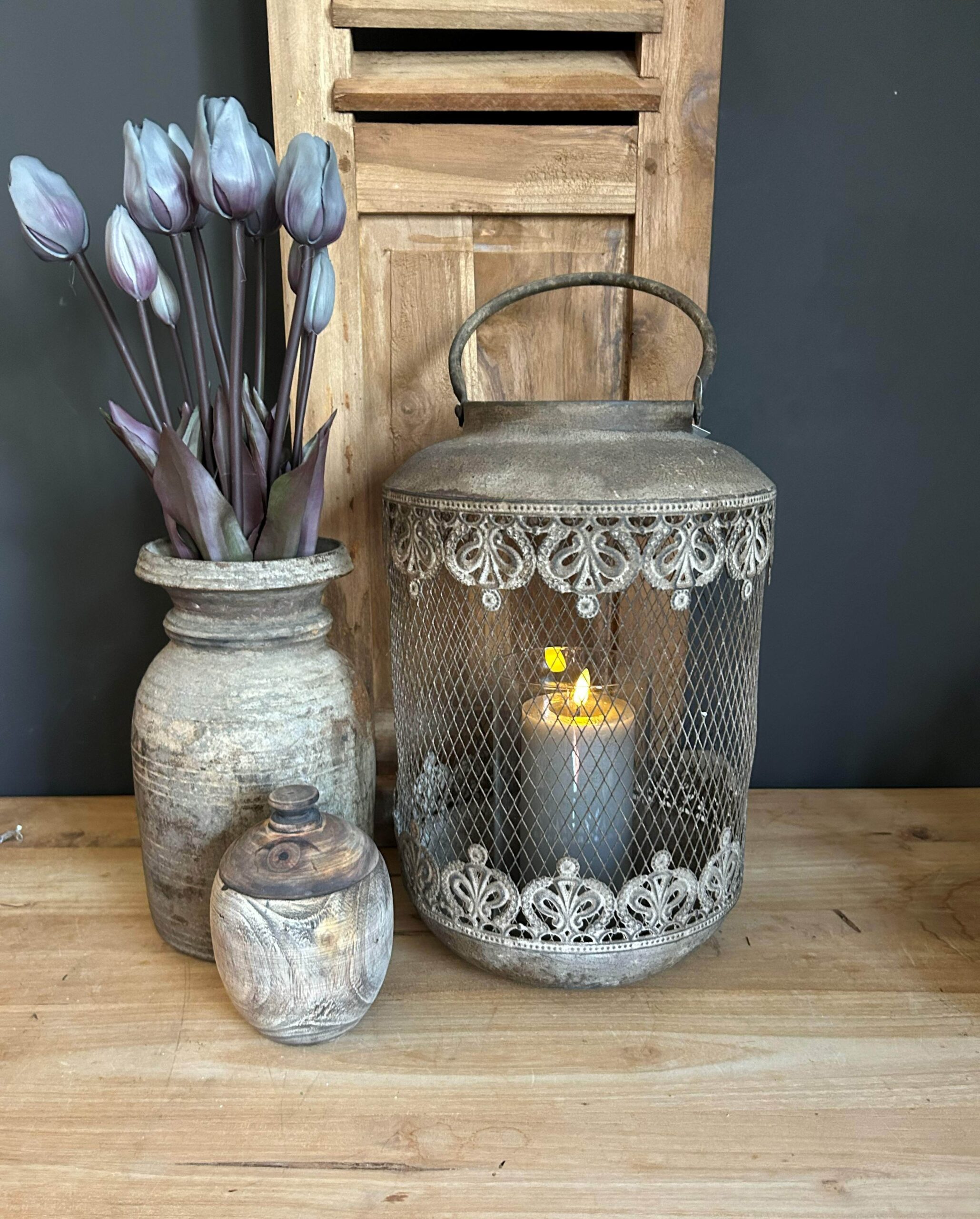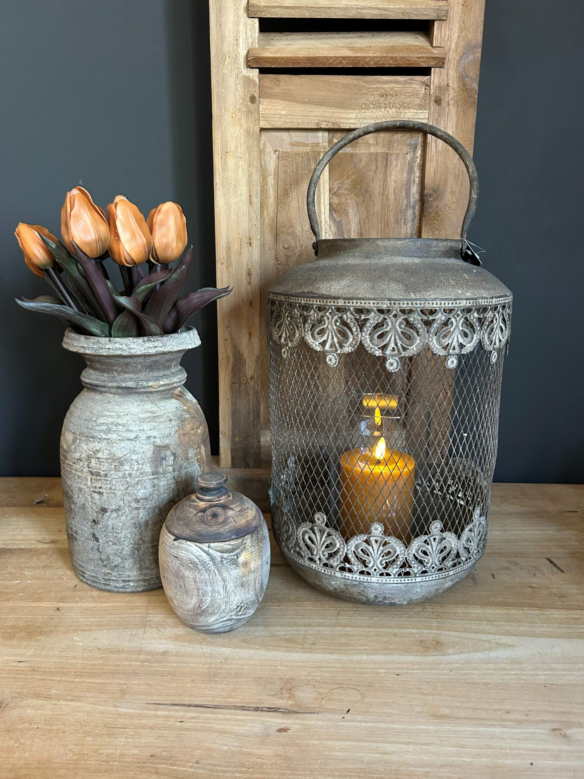 Breng sfeer en karakter in je interieur met dit prachtige windlicht uit de Countryfield collectie. Dit robuuste windlicht heeft een stoere en verweerde uitsraling en is gemaakt van stevig metaal en afgewerkt met fijn gaas. Dit zorgt voor een mooi effect wanneer een (led) kaars aan staat.
